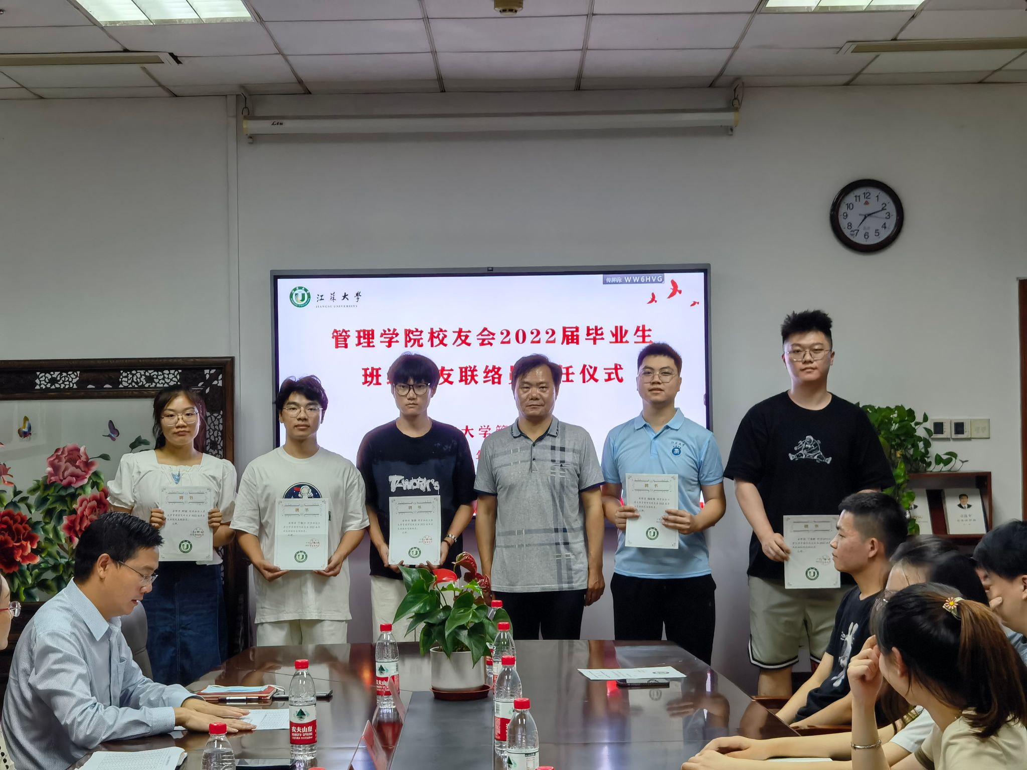仪式最后,学院向各位校友联络员赠送“江苏大学组建20周年暨办学119周年明信片”并合影留念。