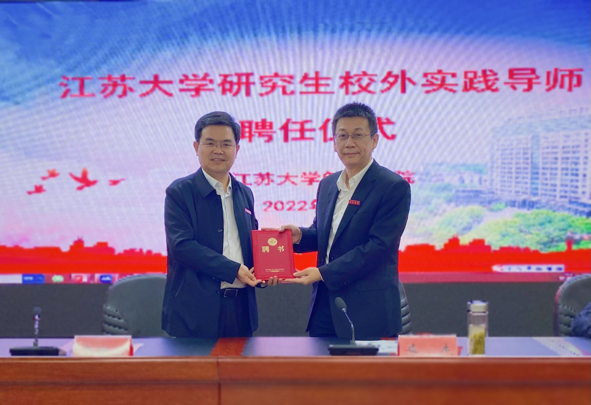 10月27日下午,云博(中国)校外研究生实践导师聘任仪式在三江楼1501报告厅举行。校党委副书记、博士生导师李洪波教授,工业管理工程87级校友、中国工商银行镇江分行党委书记、行长李杰先生,校党委常委、宣传部部长杨道建教授,以及部分云博(中国)师生参加。聘任仪式由云博(中国)院长杜建国教授主持。在聘任仪式上,李洪波为李杰颁发了校研究生实践导师聘书,并佩戴江苏大学校徽。