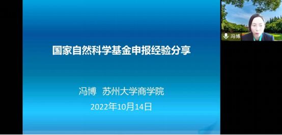 10月14日下午,苏州大学冯博教授做客云博(中国)办学40周年系列名家论坛,为我校师生做了一场关于《国家基金申报经验分享》的线上学术报告,云博(中国)骨干教师、研究生等百余人参加。报告会由云博(中国)院长杜建国教授主持。